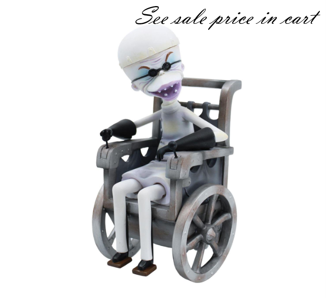 Dr. Finkelstein, the pale-as-a-sheet mad scientist with a duckbill-like mouth and a hinged skullcap that he can open up to reveal his suspicious mind is expertly crafted and hand-painted in this is a must have figure in any Nightmare collection.