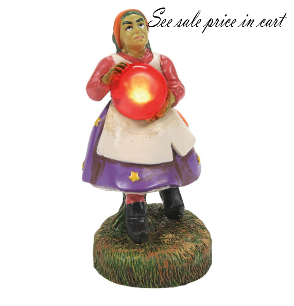 Our Cryptic witch holds a magical, mystical crystal that changes colors. The piece is battery lit and includes a detectable battery box that can convert to AC power using 56.55026 or 56.53500.