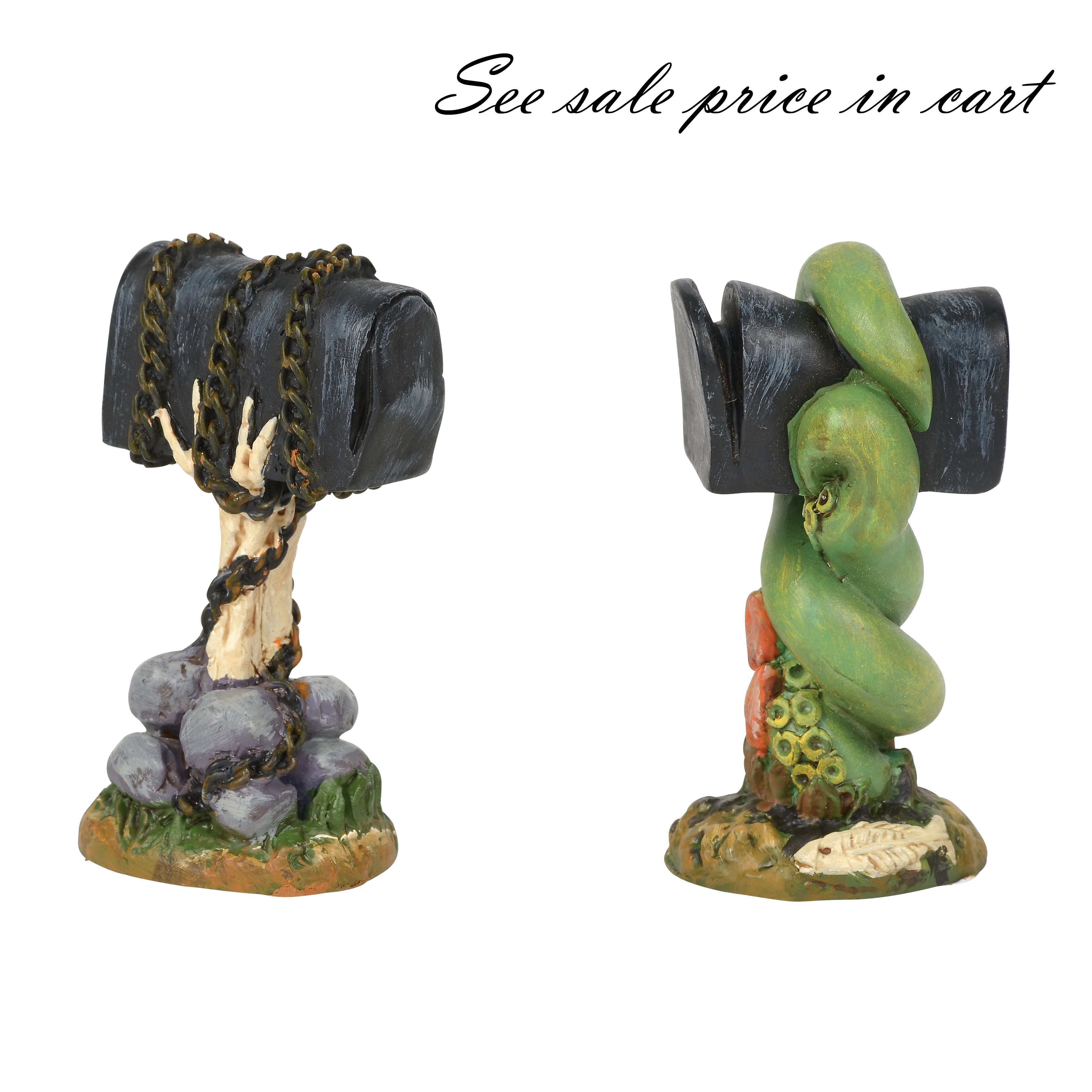 Elevate your Halloween decor with Creepy Mailboxes from Enesco Department 56. These eerie mailboxes are sure to add a spooky touch to your home. Made with high-quality materials, these mailboxes are perfect for creating a creepy ambiance for trick-or-treaters and guests.