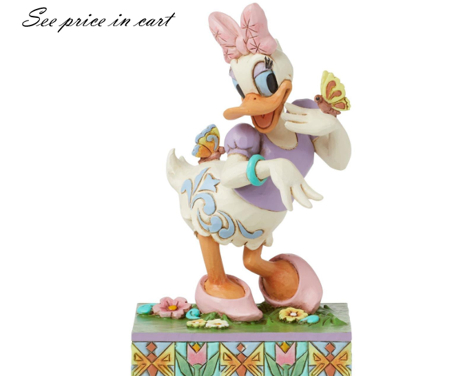 Step into the splendor of spring with this breathtaking Jim Shore figurine of Disney's beloved character, Daisy Duck. Daisy stands in awe on a stage of kaleidoscopic flowers blooming in season as delicate butterflies flutter and land beside her.