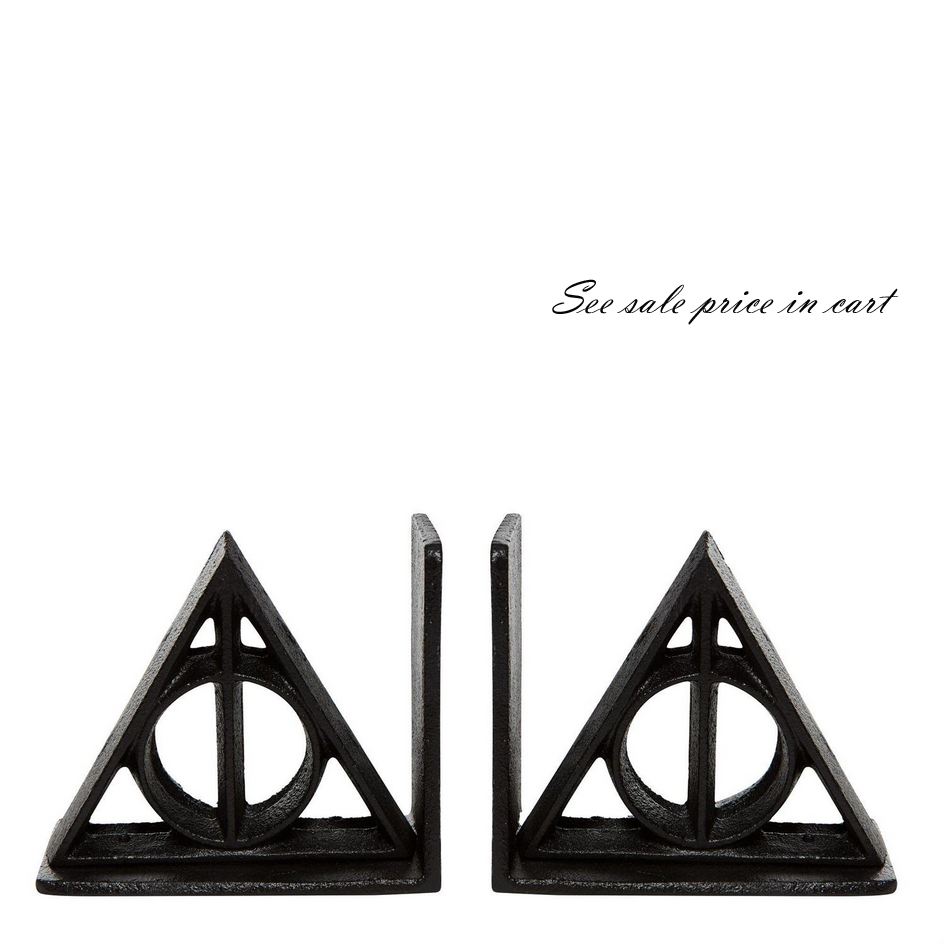 Keep your Harry Potter Collection together with these matching Deathly Hallows Cast Iron sturdy bookends. The unique and magical symbol portrays the three objects needed to defeat death – the elder wand, invisibility cloak, and resurrection stone.