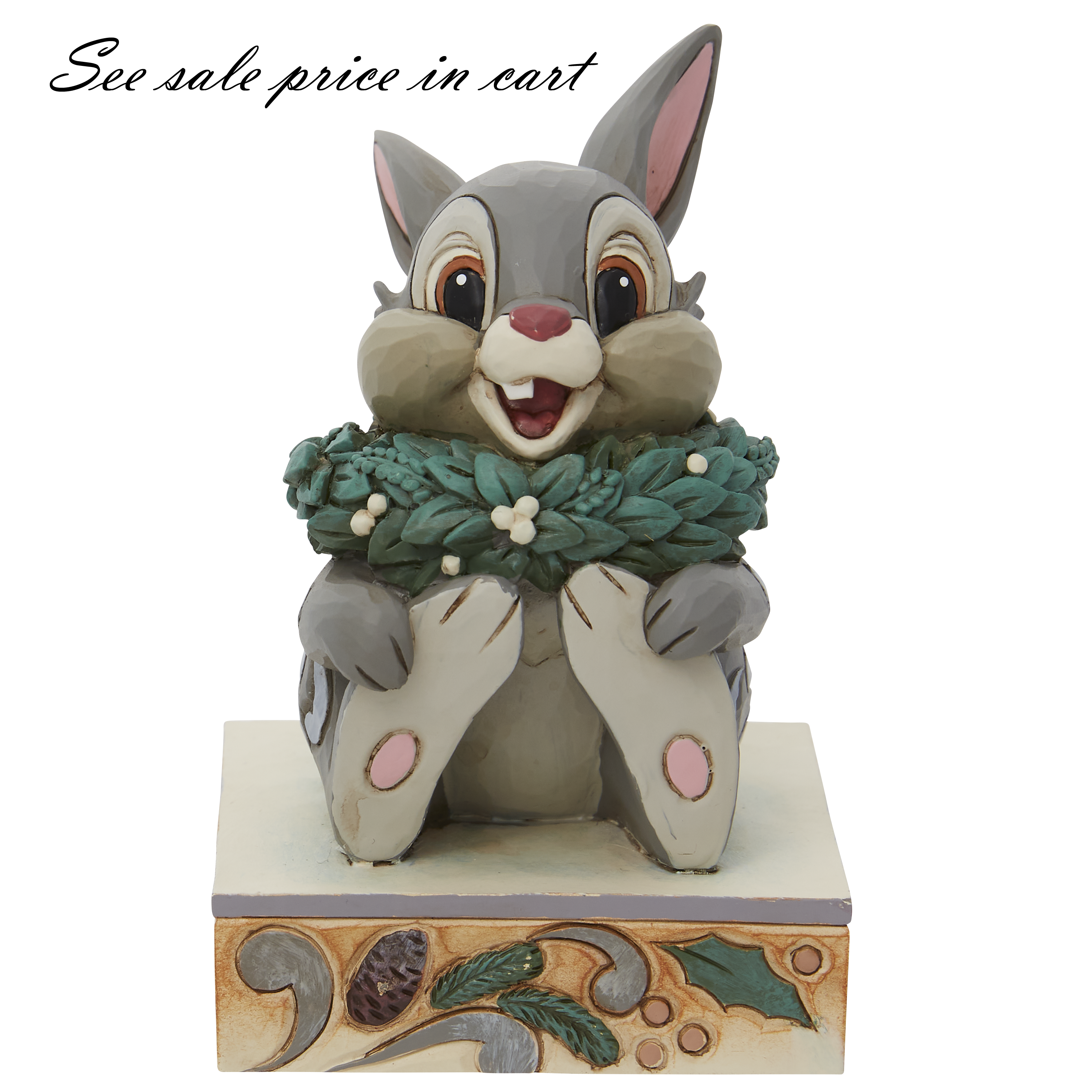 Winter has settled in the Woodland, as Bambi and his friends prepare for a spectacular season. Thumper, the gleeful bunny, wears a wreath and a smile in this playful Jim Shore piece.