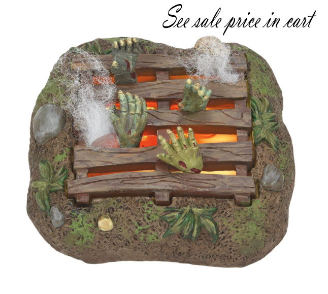Down by the swamp a trap has been installed to catch the monster who lurks at the bottom of the swamp. The piece is LED lit for a spooky effect or can be converted to AC/DC adapter (#4035316 or 56.55026).