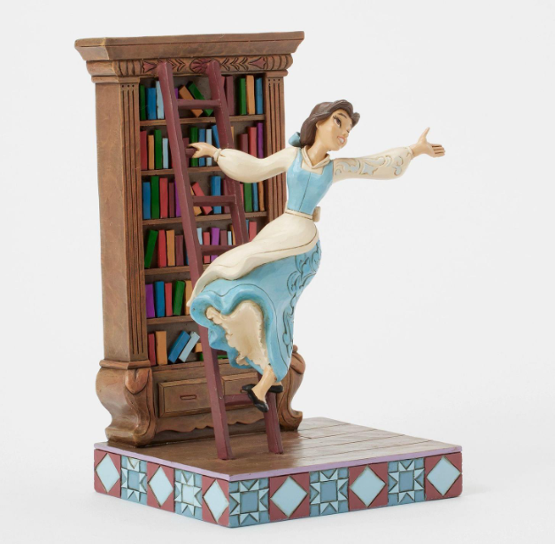 Celebrating the 35th anniversary of Beauty and the Beast, this lively Jim Shore scene captures Belle in her beloved library, singing as she glides gracefully on the bookshelf ladder. The gorgeous scene delights with exquisite rosemaling details.