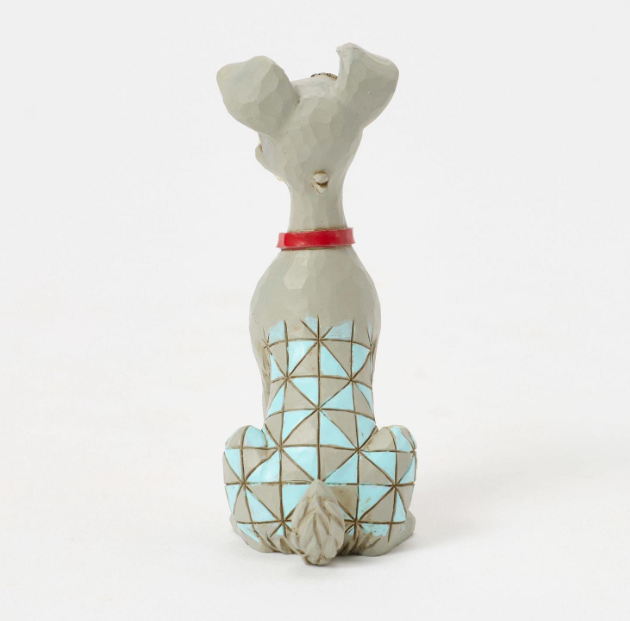 Celebrate the 70th anniversary of Lady and the Tramp with this dashing Jim Shore rendition of the Tramp. Adorned with the artist's signature patchwork and rosemaling details, he sits astutely in his new collar, ready to embrace his life with Lady.