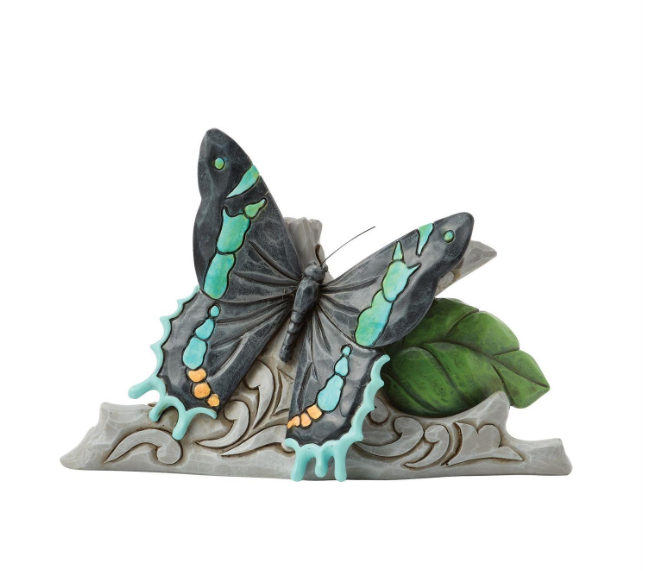 Crafted from recyclable paper, this breathtaking Jim Shore piece captures the beauty of nature with a striking Goliath butterfly perched on branch with elegant rosemaling. The piece is a delicate blend of artistry and sustainability.