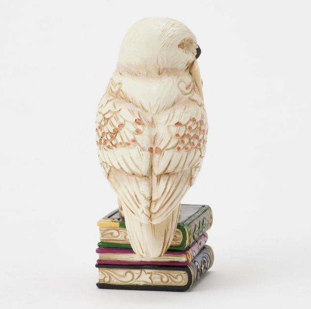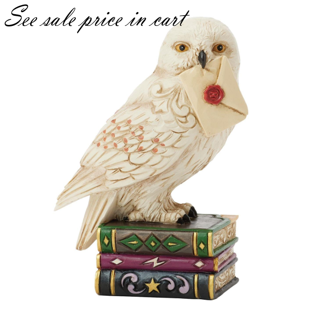 This stunning Jim Shore design showcases Hedwig holding a special letter in his mouth perched on top of a stack of books. His elegant expression highlights his loyalty and companionship, while the intricate folk art details add a touch of magic.