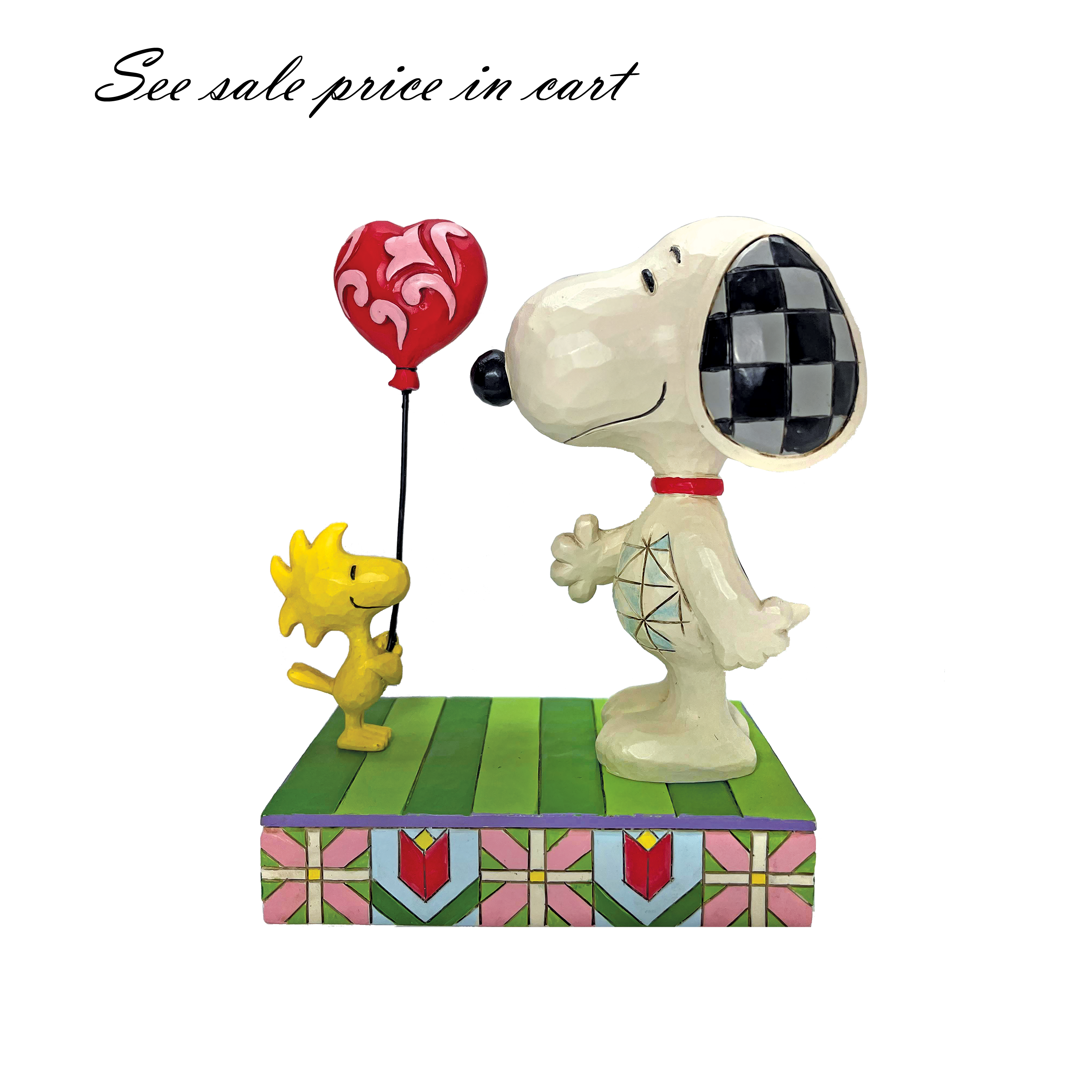 Love is in the air this Spring. Handing over a heart shaped balloon to his pal Snoopy, Woodstock smiles with affection. The pair celebrate the warmth of friendship in this brightly colored Peanuts design by Jim Shore.