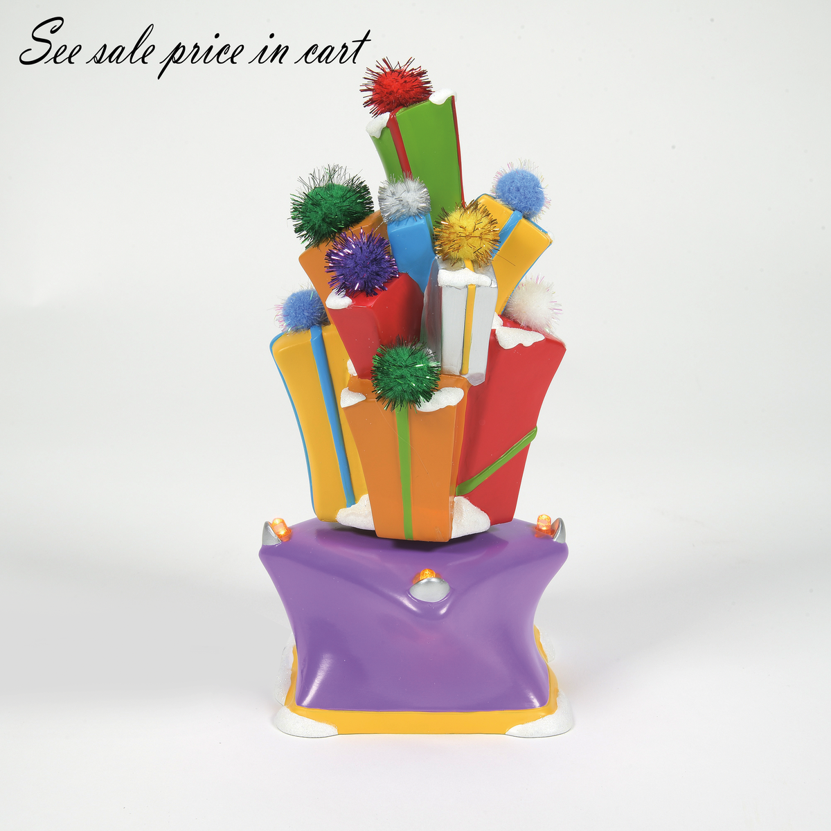 Properly wrapped then tippy-top stacked, the presents of Who-Ville spin glorious laps!
