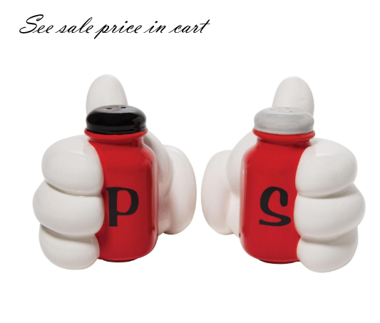 Set the table with these ceramic Salt and Pepper shakers stored in the hands of Mickey Mouse himself.