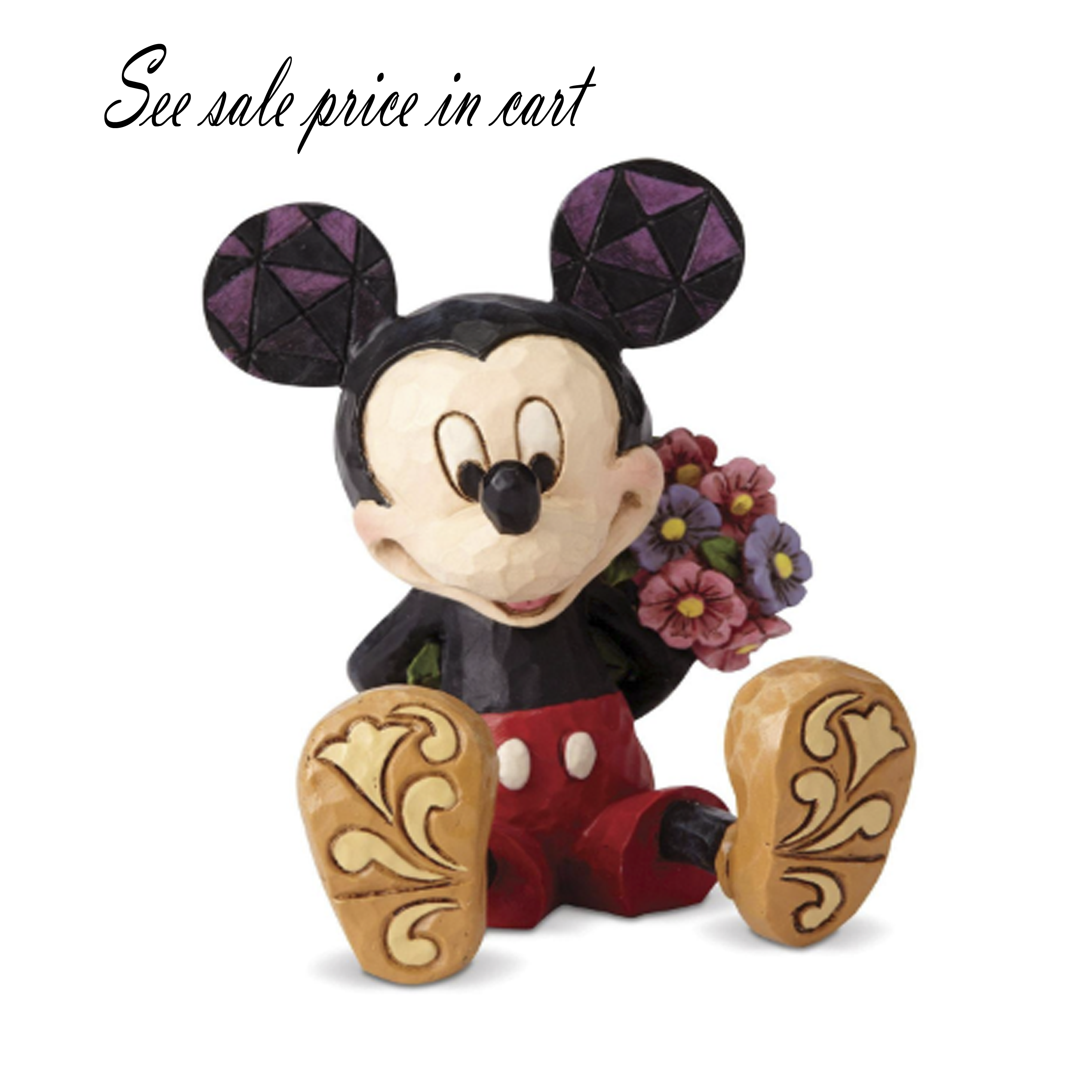 Mickey can't resist a romantic gesture! This colorful Personality Pose catches the beloved mouse with a bouquet of flowers hidden behind his back. This playful scene is hand-painted for a finish as smooth as Mickey's courtship.