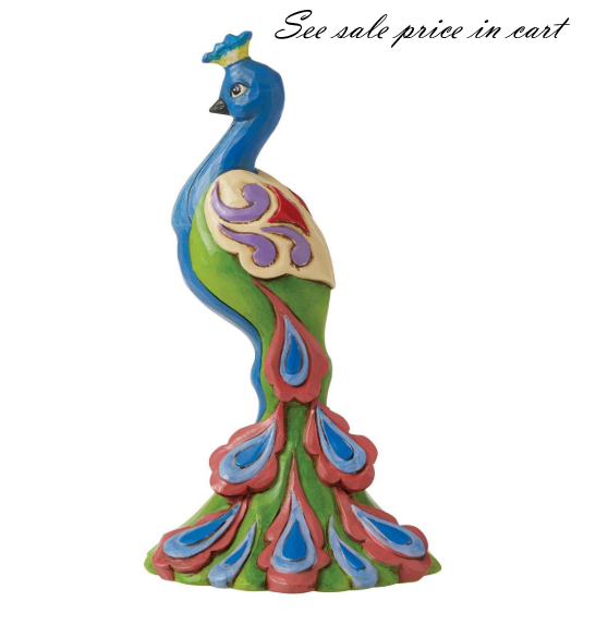 These charming friends of the animal kingdom bring a small dose of delight into your home with sweet dispositions and delicate craftsmanship. This regal peacock is a masterpiece of color and pride. Jim Shore creates a miniature to cherish.