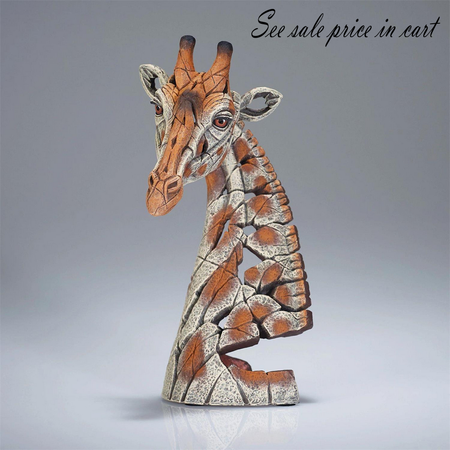 Designed and sculpted by Matt Buckley in England, Enesco is pleased to present the anticipated collection of Edge Sculpture in Miniature with this Giraffe Bust. Packaged in display-worthy, lidded, matte black box.