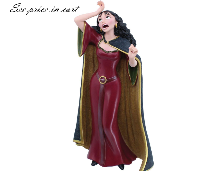 Celebrating Disney's Tangled 15th Anniversary, the Disney Showcase Collection introduces Mother Gothel. Never before offered in the collection, the very expressive Mother Gothel is adorned in a flocked cloak, hand painted gold metallic accents and satin