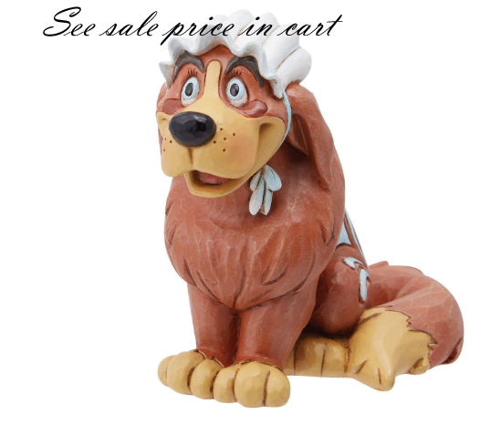 Inspired by Peter Pan, this miniature Jim Shore design features the family's beloved dog, Nana, with the artist's iconic rosemaling patterns and detailed craftmanship. The replica makes a charming addition to any Disney lover's home decor.
