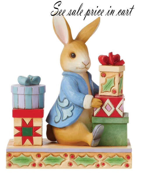 Coming up on its 120th anniversary, Jim Shore celebrates Beatrix Potter's lovable cast of characters with charming craftsmanship. This endearing figurine features the esteemed Peter Rabbit on Christmas day surrounded by handsomely packaged presents.