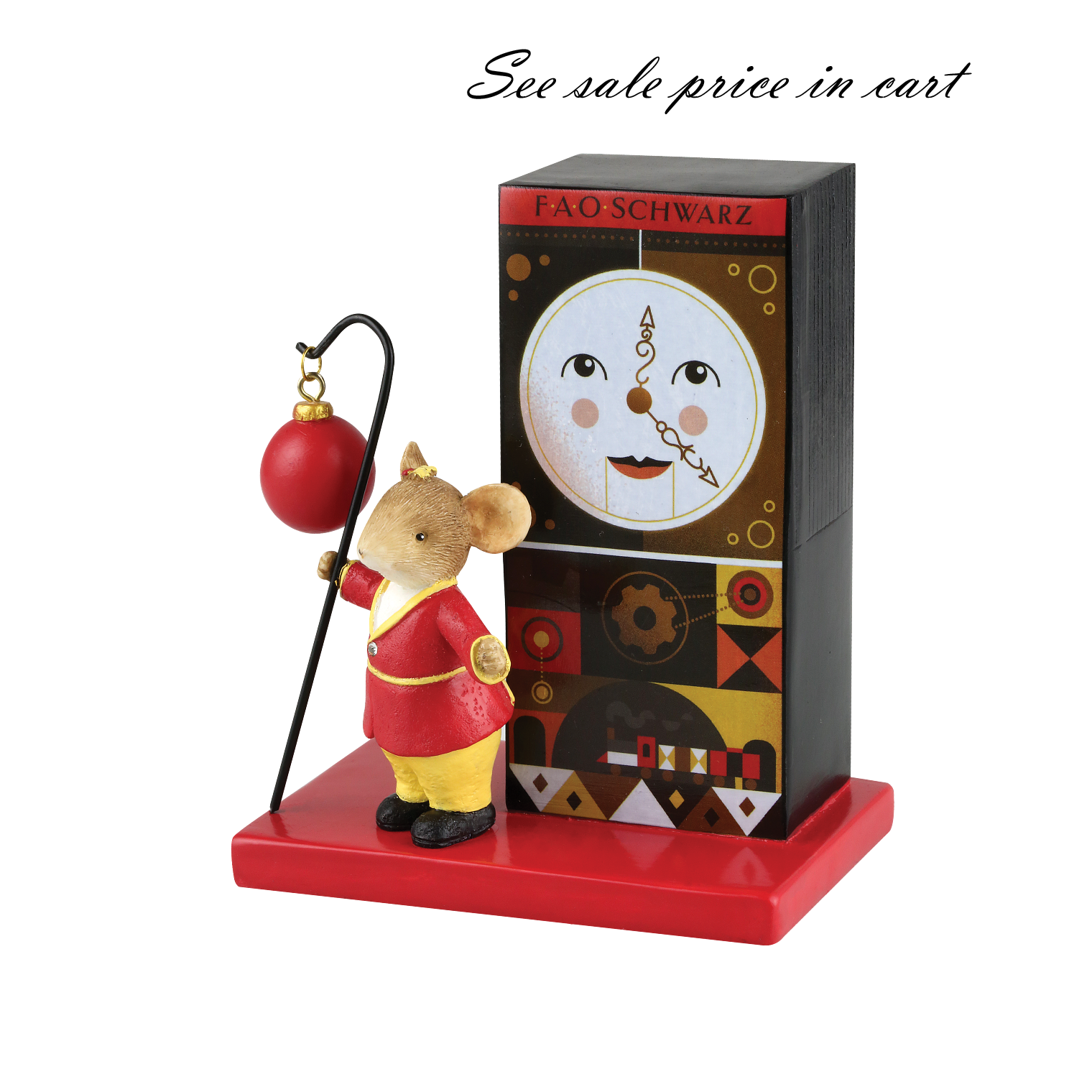 With the famous FAO clock in the background, this Tails with Heart collectible features a modest mouse with an ornament on a shepherd's hook. Featuring a regal color palette of reds, golds, and blacks, this FAO piece is inspired by timeless fun.
