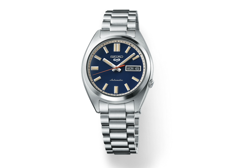 Show your style. Make your move. For over 50 years, Seiko 5 Sports has delivered consistently high levels of reliability, durability, and performance. Inspired by the best-selling SNXS series from the classic Seiko 5 collection of the past, this exceptional watch offers a compact case and bracelet design incorporating iconic elements of the original models with upgraded performance for today. Providing automatic technology that you control with every movement, this dynamic timepiece is powered by a 24-jewel movement that beats at a frequency of 21,600 vibrations per hour, with a power reserve of approximately 41 hours and manual winding capability. Framed by a metallic minute track, the deep blue dial features diamond cut indices with grooved top surfaces, a day/date calendar, and LumiBrite coating on the hands and markers for enhanced visibility in low-light conditions. Crafted of stainless steel with hairline and mirror finish, the sharply designed case has a low center of gravity for a comfortable fit and features a screwdown see-through caseback for a view of classic timekeeping in action, flowing seamlessly to a stainless steel bracelet with a tri-fold push button release clasp. 10 bar, 100M Water Resistant.