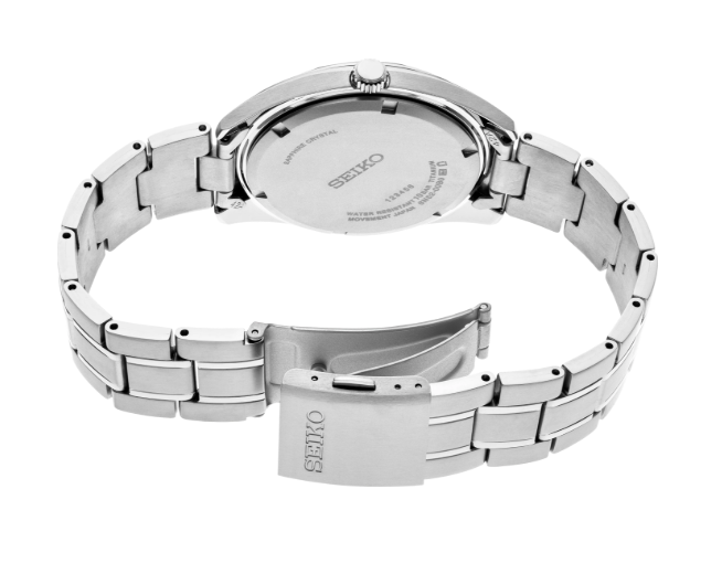From the Essentials Collection. Offering classic dress/sport designs, the Essentials Collection provides the ideal solution for everyday wear. Crafted of durable and light-weight titanium, this perfectly tailored watch features a contemporary minimalist blue sunray dial with date calendar, for a superb blend of clarity and wearability. The sapphire crystal adds superior scratch resistance. 10 bar, 100M Water Resistant.