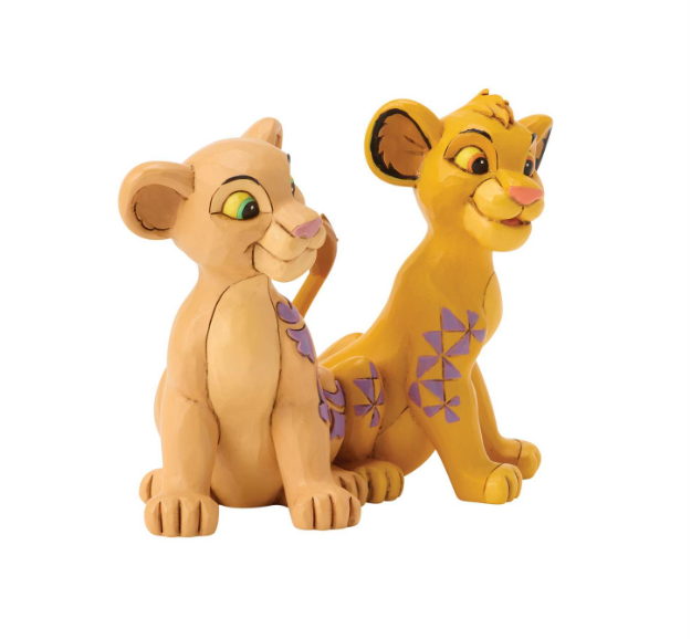 Celebrate the circle of love with Simba and Nala with this charming Jim Shore design featuring the young pair. Their tails form a heart as they sit close, adorned with Jim Shore's signature rosemaling and floral flourishes.