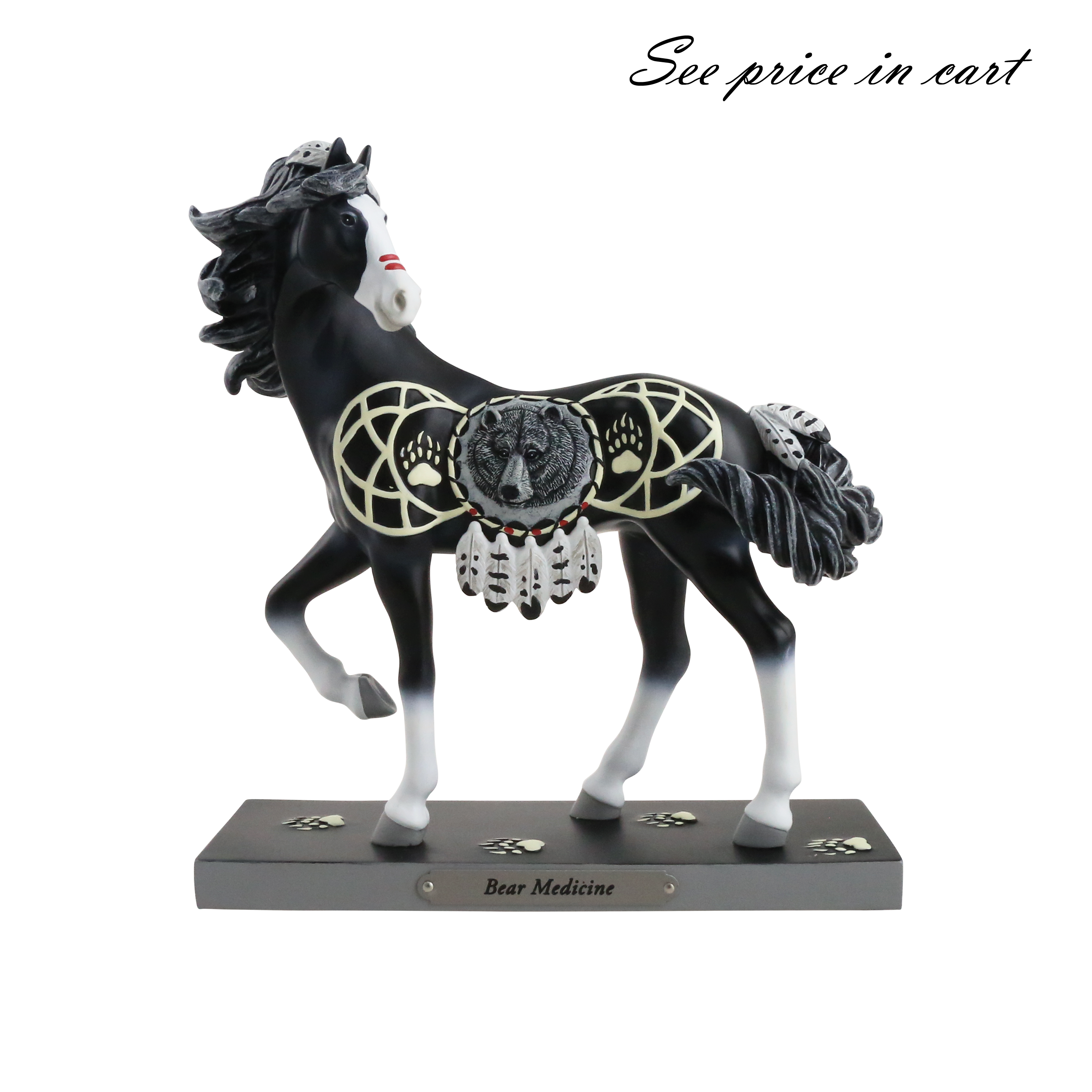 Embrace the beauty and heritage of the Native American culture with the "Bear Medicine" figurine from Trail of Painted Ponies. This stunning horse figurine showcases intricate details and bold colors, making it a captivating addition to any collection. Celebrate the spirit and power of the bear with this unique piece.