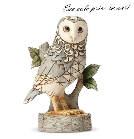 Handcrafted in breathtaking detail, this delightful White Woodland Owl is beautifully decorated in Jim Shore's subtle combination of traditional quilt patterns and rosemaling designs.